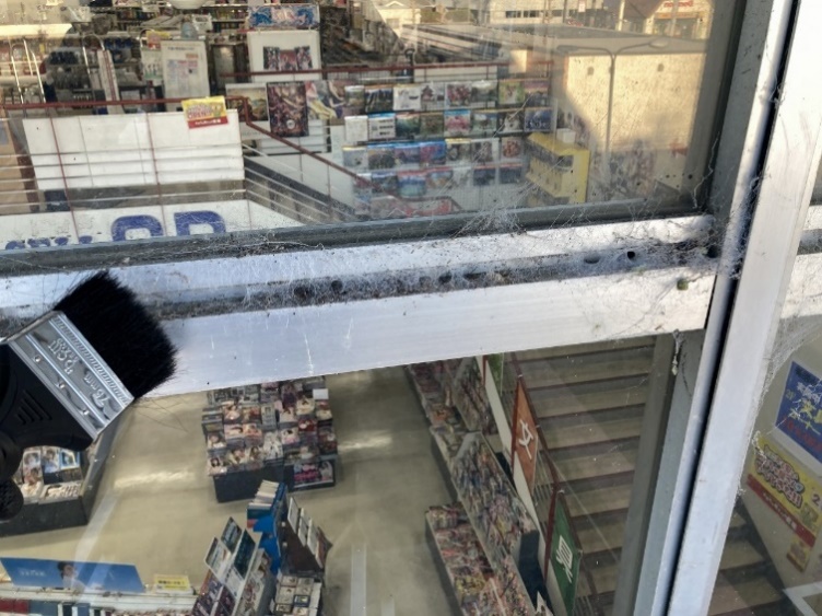 高所含めた内窓と外窓を清掃して店内の窓をキレイにしました。 汚れが強い床は剥離作業を行った後にWAXで仕上げました。 高所にある蜘蛛の巣を取り除くことで窓周辺をキレイにしました。
