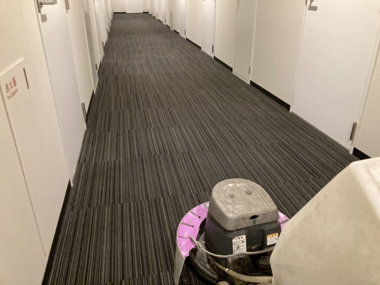 会社の寮のカーペットの清掃。部分的に汚れが酷いところもあるのでキレイに洗浄を行いました。