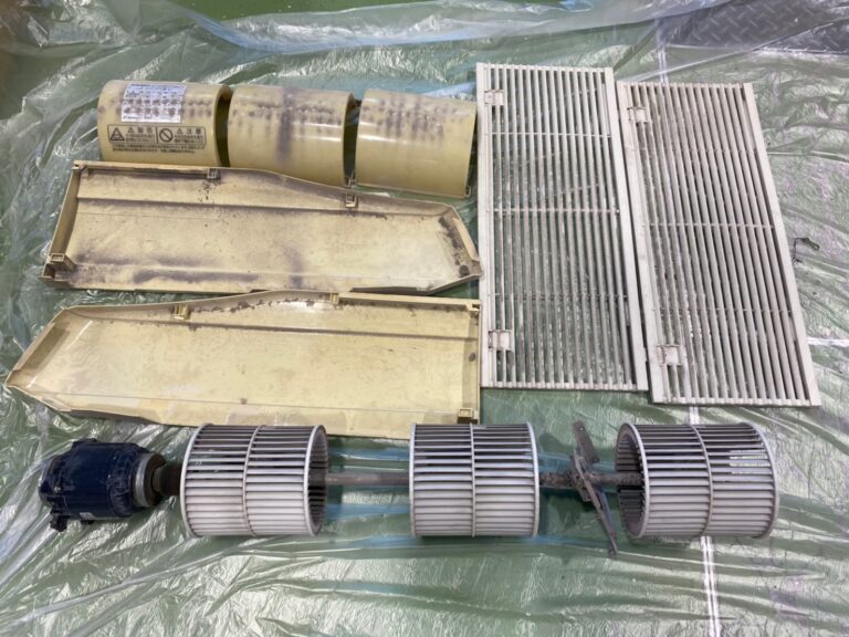 美容院のエアコン分解洗浄を行いました。使えば使うほど自然と汚れが溜まっていきます。定期的に洗浄をおススメします。